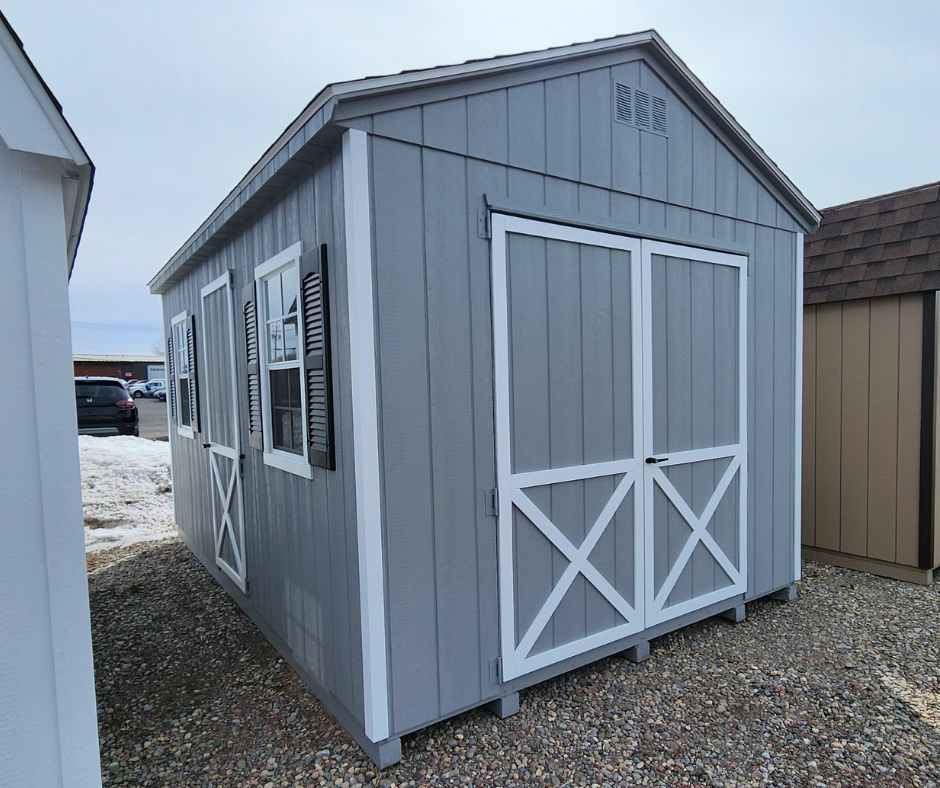 ADDITIONAL 3' DOOR(250); UPGRADE TO 6' DOUBLE DOORS(125); UPGRADE TO 24X36 WINDOWS(170); RAISE WALLS 12"(520); PERMA TRIM CORNERS(195); 4X10 LOFT(200); SHUTTERS & TRIM(150)