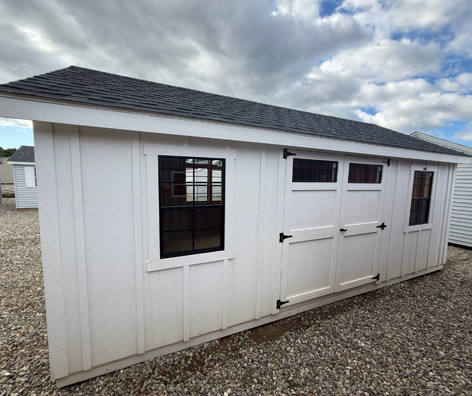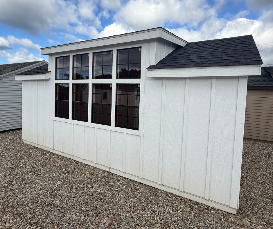BOARD & BATTEN SIDING(960); UPGRADE TO 24X36 WINDOWS(170); 4 ADDITIONAL 24X36 WINDOWS(800); 4 WINDOW FARMHOUSE DOORMER(1975); 2 TRANSOM WINDOWS(incl.), TRIM: WHITE